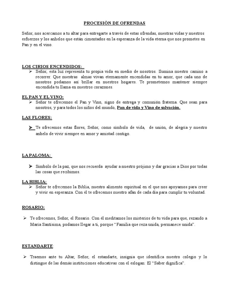 Monición antes de la entrada del sacerdote nosotros hemos recibido una tradición que viene desde los apóstoles, hace dos mil años, según la cual el señor jesús, antes de dar su vida por nosotros, reunido con ellos para celebrar la pascua, tomó pan, dio gracias a dios, padre suyo y padre … Durante la construcción de la catedral, el sagrario se. Mucha gente no practicante, a la cual hay que reí con simpatía y benevolencia, sin insinuar 30.12.2021 · también se incluyen ofrendas relacionadas con nuestra cultura.